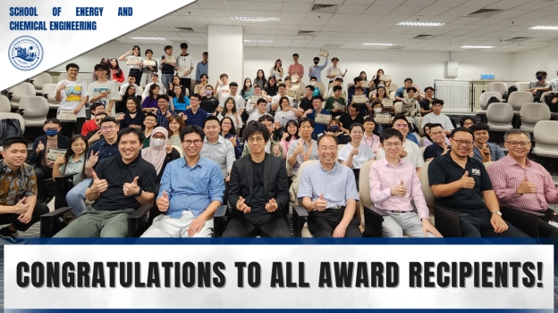 The Awards ceremony, held on 27 October 2023, commenced with a motivating opening speech by Prof. Chen Binghui, the Dean of the School of Energy and Chemical Engineering. The event proceeded with the distribution of certificates to all the award recipients, followed by an informative postgraduate briefing on Chemical Engineering and New Energy Science and Engineering Postgraduate Programmes by respective HoPs. Wrapping up the memorable occasion was a closing speech delivered by Prof. Huang Nay Ming, Head of the Department of New Energy Science and Engineering. The ceremony was attended by the award recipients and all the SECE staff.
