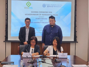 Ms. Tan Wan Ting, Director of Ecorys Sdn. Bhd., and Prof. Wang Hui-Qiong, Assistant President of XMUM, signed the MOA. Ir. Dr. Ban Zhen Hong and Mr. Patric Looi witnessed the ceremony.