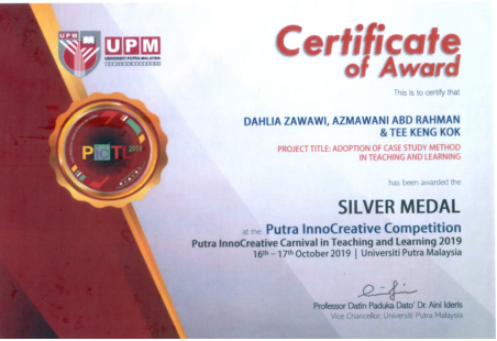 The Certificate of Silver Medal Award for Dr. Tee Keng Kok’s project