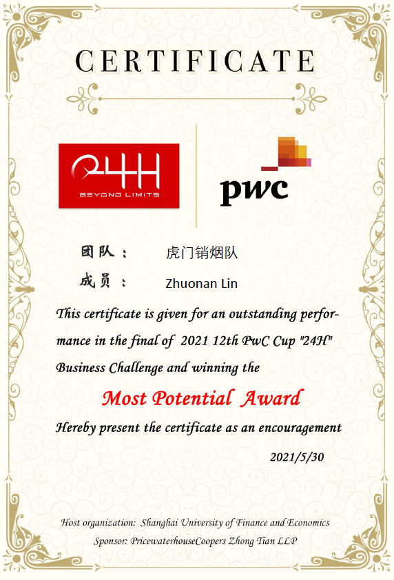 The Innovation Center congratulates Lin Zhuonan and Xu Zichen, both second year undergraudates from XMUM School of Economics and Management, for winning Global Third Prize at the 12th PwC Cup “24H” Business Challenge 2021.