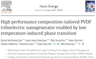 Entitled “High Performance Composition-tailored PVDF Triboelectric Nanogenerator Enabled by Low Temperature-induced Phase Transition”, the result of this research has just been published on Nano Energy, an SCI Q1 journal with an impact factor of 19.069.