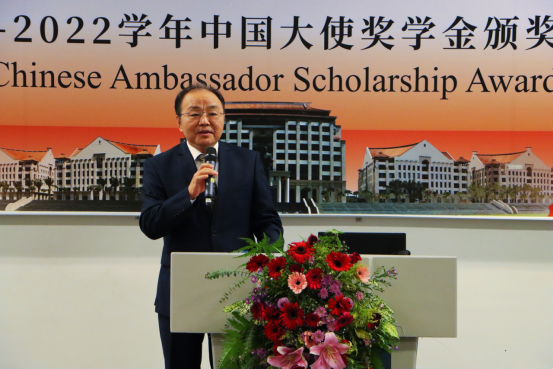 XMUM President Prof. Wang Ruifang expressed his heartfelt gratitude to the Chinese Embassy and H.E. Ouyang Yujing for providing continued support to the university. During his speech, he gladly reported the latest progress of XMUM. Currently, more than 6,800 students from 38 countries are studying with XMUM. 22 undergraduate programmes, 9 masters and 5 PhD programmes are being offered. XMUM faulty members and students have won multiple research awards and have published more than 1,330 papers in SCI journals, including 189 papers authored by XMUM undergraduates. 79 publications were selected as Top 1% Highly Cited Papers globally. Prof. Wang reiterated XMUM’s commitment to build a multi-cultural campus and to attract outstanding students from diverse cultural backgrounds with generous scholarship offer.