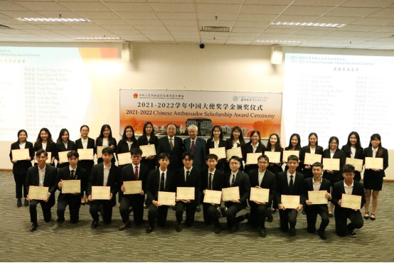Ambassador Ouyang and President Wang together with the scholarship recipients
