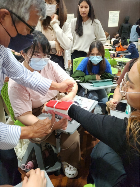 Students were practicing pulse examination, one of the four major assessments in TCM diagnosis