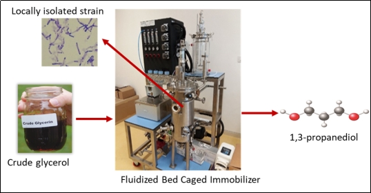 According to the researchers, this patent creates a fluidized bed bioreactor to cater to high cell density immobilizer for high productivity of 1,3-propanediol. The project aims to produce regional key strategic precursor 1,3-propanediol to boost local bioeconomy in Malaysia, unlocking various business opportunities in Southeast Asia and strengthening local palm-oleo and palm-biodiesel industry by converting its crude glycerine waste into value-added products. The technology is also transferable to other biochemical processes to utilize local agricultural wastes into value-added biochemical compounds.