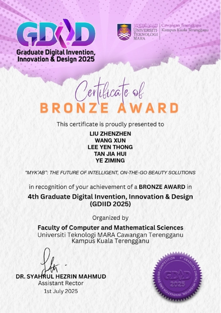 The GDIID 2025 competition, now in its fourth edition, is an international event organised by Universiti Teknologi MARA (UiTM), Terengganu Branch, Kuala Terengganu Campus. Held fully online, the competition invited graduate students from around the world to present innovative digital solutions under the theme "Igniting Minds, Innovating Digital Futures".