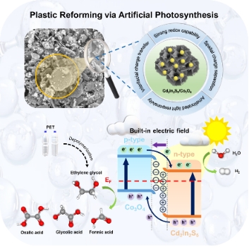 The study explores the coupling of Cd₂In₂S₅ and Co₃O₄ to form a p–n heterojunction with a built-in electric field, which enhances photocatalytic performance by improving charge separation and transfer. The heterojunction demonstrated up to 84% charge balance, resulting in increased solar fuel and high-value chemical production. This work may provide a new approach for designing p–n heterojunctions and advancing plastic photoreforming technologies aligned with circular economy goals.
