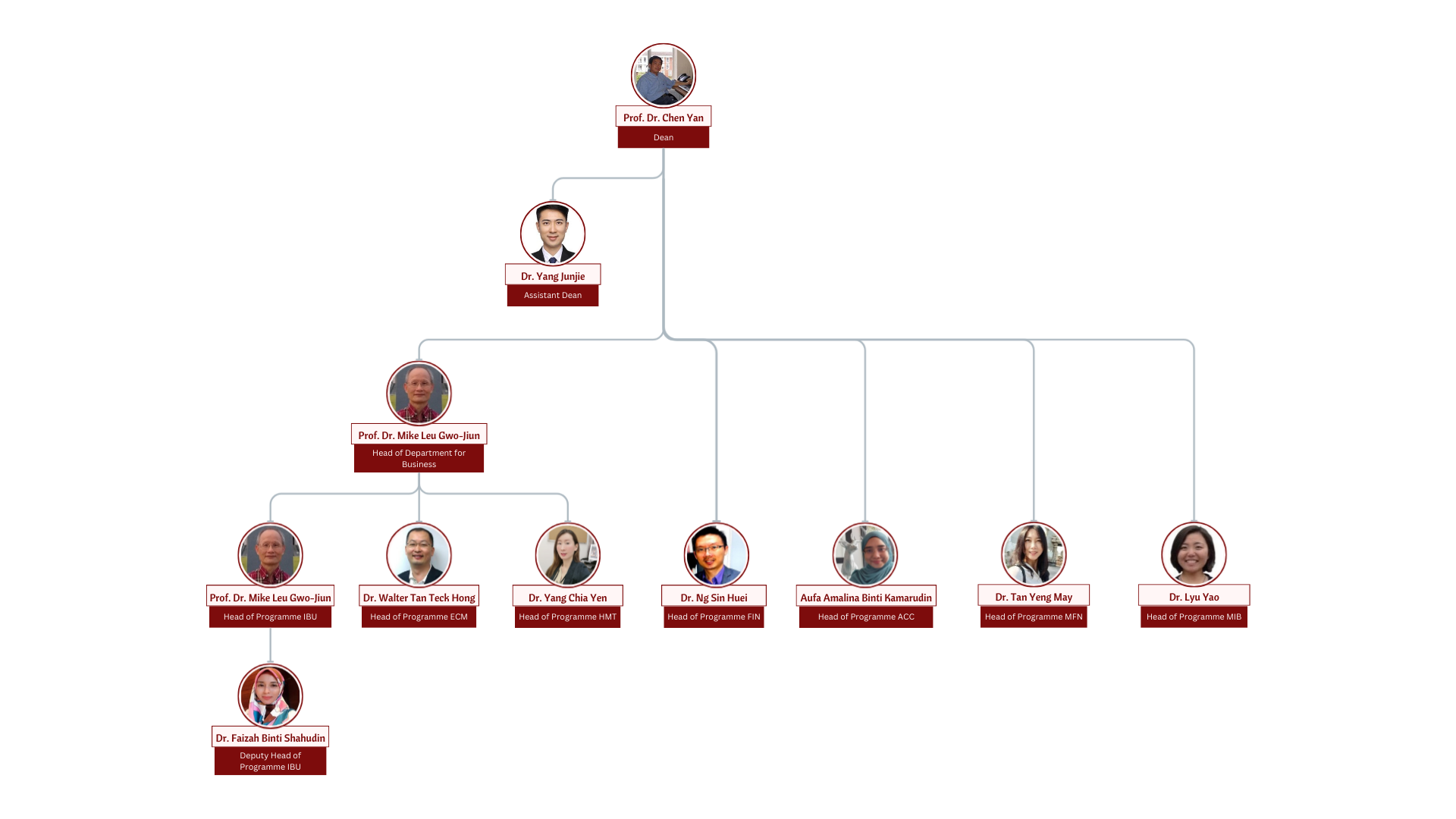 Submitted by admin on Thu, 07/31/2025 - 15:00 Organizational Chart Organisational Chart Staff Profile CHEN Yan Professor, Dean YANG Junjie Associate Professor cum Assistant Dean Gwo-Jiun Mike Leu Professor/Head of Department for Business cum Head of IBU Programme TAN Yeng May Head of Program, Master of Economics in Finance /Assistant Professor of Finance Faizah SHAHUDIN Deputy Head of International Business Programme Assistant Professor (Economics) TAN Teck Hong (Walter) Professor (visiting)/ Head of Programme for E-commerce NG Sin Huei Associate Professor/Head of Programme for FIN WANG Peiming Professor cum MBA Director Aufa Amalina Binti KAMARUDIN Assistant Professor Atikah AZHAR Lecturer HUANG Yi Assistant Professor ZHU Xiaofan Assistant Professor Zhang Rongteng (Renata) Assistant Professor YOU Hui Wei Assistant Professor YIP Tien Ming Assistant Professor YIN Chenli Assistant Professor YAP Chin Fook (Ben) Senior Lecturer YANG Chia Yen Assistant Professor cum Head of Programme for HMT WONG Wang Li (Nick) Senior Lecturer William KELING Assistant Professor TOH Moau Yong Associate Professor Thomas BORYNIEC Assistant Professor THAN Lee Lee (Phoebe) Assistant Professor TEOH Bak Aun (Anderson) Assistant Professor TEE Chee Lip Senior Lecturer TAN Siow Kian (Jane) Associate Professor TAN Kim Leng (Edwin) Assistant Professor TAN Khar Mang Assistant Professor/Coordinator, Faculty and Student Services Committee (FSSC) TAN Consilz Senior Lecturer SULFEEZA Md Drus Assistant Professor SHI Xiang Assistant Professor Saima NISAR Lecturer Sabirah SULAIMAN Assistant Professor Ricardo Baba Associate Professor/Coordinator, Teaching and Learning Committee (SEM) PANG Chui Ling (Josephine) Lecturer OOI Tze Wei Assistant Professor ONG Chui Zi (Tracy) Assistant Professor NORIDAYU Abdullah Sani Assistant Professor Nik Mohamad Zaki NIK SALLEH Assistant Professor/Coordinator of School Accreditation Committee. LYU Yao Assistant Professor LONG Xiaoning (Cheryl) Professor/Director of IPIRC LOO Poh Theng (Beatrice) Associate Professor Lingzi LIU (Lindsay) Assistant Professor LIEW Ping Xin Assistant Professor LI Jianliang Assistant Professor LEE Weng Chang Assistant Professor Krishna Moorthy MANICKA Nadar Assistant Professor KHONDKER Aktaruzzaman Assistant Professor GUO Sainan Assistant Professor Daljit Kaur a/p Pajen Singh Lecturer DAI Bochuan Assistant Professor CHOON Shay Wei Assistant Professor CHOO Ling Suan Assistant Professor CHONG Sin Er Assistant Professor CHONG Leong Yew Lecturer CHEN Xiaoyan Assistant Professor Ann Selvaranee BALASINGAM Senior Lecturer ANAS Afandi Ahmad Apandi Lecturer ALICE Tamah Senior Lecturer AJANTHA Velayutham Assistant Professor CHIN Sze Kim Senior Lecturer BEH Yean Shan Adjunct Research Fellow SEM Faculty Related EnquiryContact Person:Ms. Khoo Yen LooEmail:inquiry_sem@xmu.edu.my Tel:+603 8705 5326Address:School of Economics and Management,Xiamen University Malaysia,429, Lee Shin Cheng building (A2),Jalan Sunsuria, Bandar Sunsuria43900 Sepang, Malaysia Use Sliding Banner? Off Off