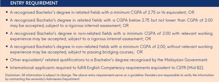 ENTRY REQUIREMENT - MASTER OF BUSINESS ADMINISTRATION (N/345/7/1078)