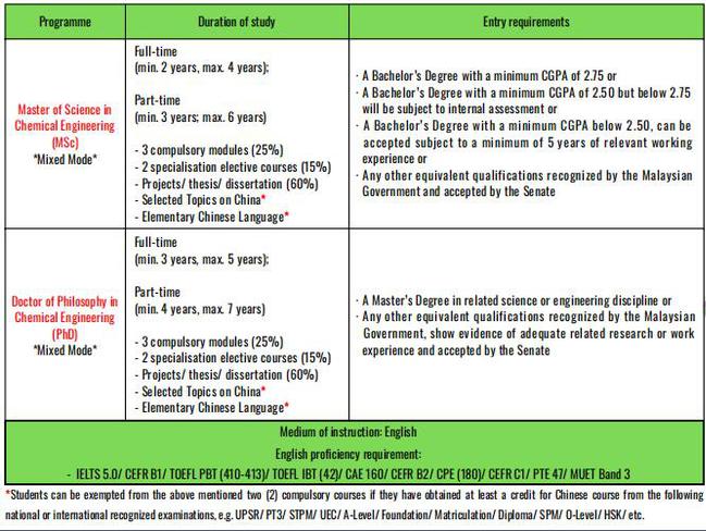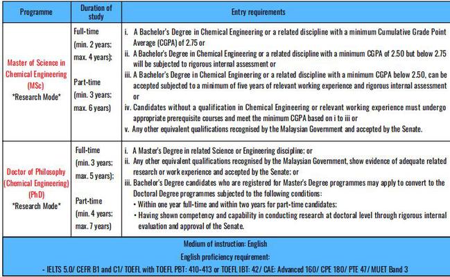 ENTRY REQUIREMENT - CHEMICAL ENGINEERING MSC & PHD