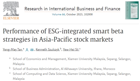The Research and Postgraduate Centre congratulates Assistant Prof. Dr. Tan Yeng May from the School of Economics and Management on her newest publication on the Research in International Business and Finance (RIBAF), an SSCI Q1 journal with the latest impact factor of 6.5. This article is co-authored by Sii Yew Hei, a graduate of the class of 2022 from the School of Computing and Data Science, Xiamen University Malaysia.