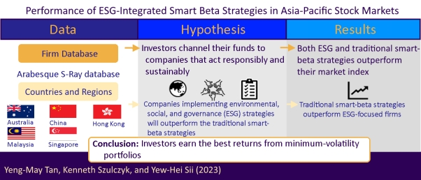 The article entitled “Performance of ESG-Integrated Smart Beta Strategies in Asia-Pacific Stock Markets” investigates the performance of investment strategies that incorporate environmental, social, and governance (ESG) factors in five Asia-Pacific stock markets of Australia, Mainland China, Hong Kong, Malaysia, and Singapore. The authors utilize a proprietary ESG rating database containing monthly firm-specific data, combining positive screening and the smart beta approach to evaluate the performance of ESG-based equity portfolios and compare them with traditional portfolios. The key findings indicate that high-ESG-rated portfolios do not offer superior risk-adjusted returns compared to lower-rated portfolios. As such, it may be premature to conclude that investors can ‘do well while also doing good’.
