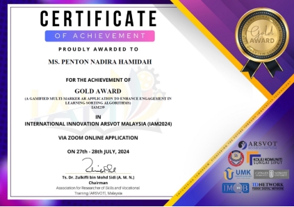 The Innovation and Entrepreneurship Centre congratulates Nadira Hamidah Penton, Lim H'ng Ping and their supervisor Dr. Ahmad Affandi Supli from the School of Computing and Data Science for receiving Gold and Silver Award, respectively in the International Innovation ARSVOT Malaysia 2024 (IAM2024).
