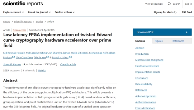 The Research and Postgraduate Centre congratulates the School of Artificial Intelligence and Robotics (SAIR) and the School of Computing and Data Science (SCDS) on their recent research article published in Scientific Reports, a SCIE Q1 journal indexed by Web of Science with a current impact factor of 3.9.