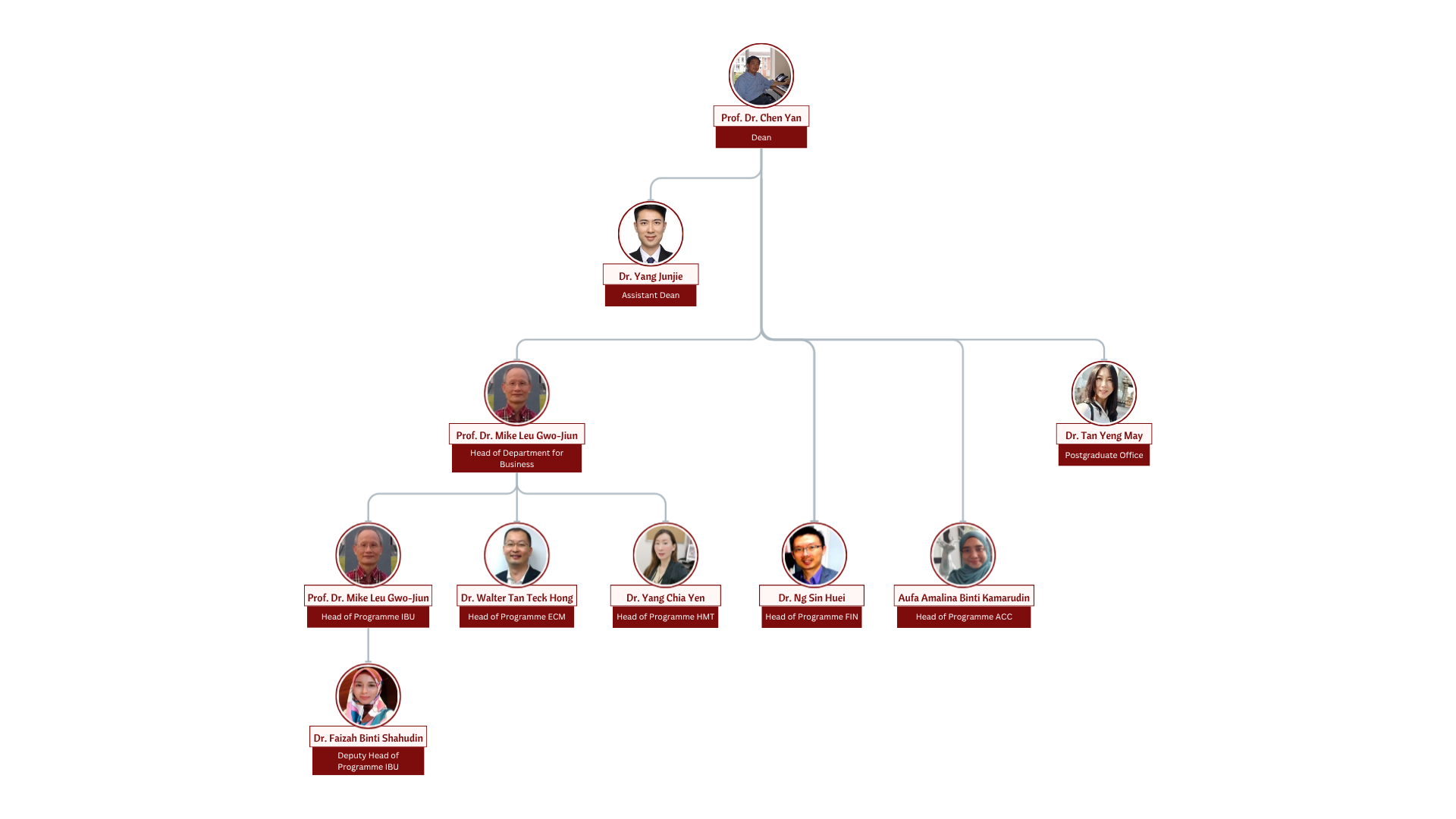 Submitted by admin on Thu, 07/31/2025 - 15:00 Organizational Chart Organisational Chart Staff Profile CHEN Yan Professor, Dean YANG Junjie Associate Professor cum Assistant Dean Gwo-Jiun Mike Leu Professor/Head of Department for Business cum Head of IBU Programme TAN Yeng May Head of Program, Master of Economics in Finance /Assistant Professor of Finance Faizah SHAHUDIN Deputy Head of International Business Programme Assistant Professor (Economics) TAN Teck Hong (Walter) Professor (visiting)/ Head of Programme for E-commerce NG Sin Huei Associate Professor/Head of Programme for FIN WANG Peiming Professor cum MBA Director Aufa Amalina Binti KAMARUDIN Assistant Professor ZHU Xiaofan Assistant Professor Zhang Rongteng (Renata) Assistant Professor YOU Hui Wei Assistant Professor YIP Tien Ming Assistant Professor YIN Chenli Assistant Professor YAP Chin Fook (Ben) Senior Lecturer YANG Chia Yen Assistant Professor cum Head of Programme for HMT WONG Wang Li (Nick) Senior Lecturer William KELING Assistant Professor TOH Moau Yong Associate Professor Thomas BORYNIEC Assistant Professor THAN Lee Lee (Phoebe) Assistant Professor TEOH Bak Aun (Anderson) Assistant Professor TEE Chee Lip Senior Lecturer TAN Siow Kian (Jane) Associate Professor TAN Kim Leng (Edwin) Assistant Professor TAN Khar Mang Assistant Professor/Coordinator, Faculty and Student Services Committee (FSSC) TAN Consilz Senior Lecturer SULFEEZA Md Drus Assistant Professor SHI Xiang Assistant Professor Saima NISAR Lecturer Sabirah SULAIMAN Assistant Professor Ricardo Baba Associate Professor/Coordinator, Teaching and Learning Committee (SEM) PANG Chui Ling (Josephine) Lecturer OOI Tze Wei Assistant Professor ONG Chui Zi (Tracy) Assistant Professor NORIDAYU Abdullah Sani Assistant Professor Nik Mohamad Zaki NIK SALLEH Assistant Professor/Coordinator of School Accreditation Committee. LYU Yao Assistant Professor LONG Xiaoning (Cheryl) Professor/Director of IPIRC LOO Poh Theng (Beatrice) Associate Professor Lingzi LIU (Lindsay) Assistant Professor LIEW Ping Xin Assistant Professor LI Jianliang Assistant Professor LEE Weng Chang Assistant Professor Krishna Moorthy MANICKA Nadar Assistant Professor KHONDKER Aktaruzzaman Assistant Professor GUO Sainan Assistant Professor Daljit Kaur a/p Pajen Singh Lecturer DAI Bochuan Assistant Professor CHOON Shay Wei Assistant Professor CHOO Ling Suan Assistant Professor CHONG Sin Er Assistant Professor CHONG Leong Yew Lecturer CHEN Xiaoyan Assistant Professor Ann Selvaranee BALASINGAM Senior Lecturer ANAS Afandi Ahmad Apandi Lecturer ALICE Tamah Senior Lecturer AJANTHA Velayutham Assistant Professor CHIN Sze Kim Senior Lecturer BEH Yean Shan Adjunct Research Fellow SEM Faculty Related EnquiryContact Person:Ms. Khoo Yen LooEmail:inquiry_sem@xmu.edu.my Tel:+603 8705 5326Address:School of Economics and Management,Xiamen University Malaysia,429, Lee Shin Cheng building (A2),Jalan Sunsuria, Bandar Sunsuria43900 Sepang, Malaysia Use Sliding Banner? Off Off