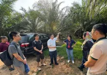 Assoc. Prof. Dr. Tan (centre, in white) explaining sampling protocols to the Malaysia Government-Linked Public Listed Company biofertilizer team during fieldwork